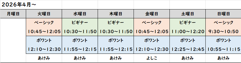 | 1回 Lesson+ポワント | 当日 | ¥3,630 |